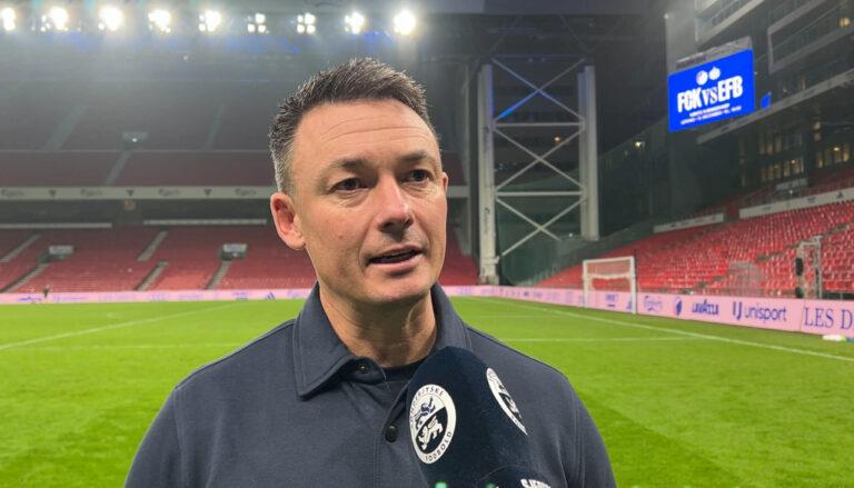 Cheftræner Thomas Nørgaard var glad og stolt over vores flotte sejr over FCK i Parken.