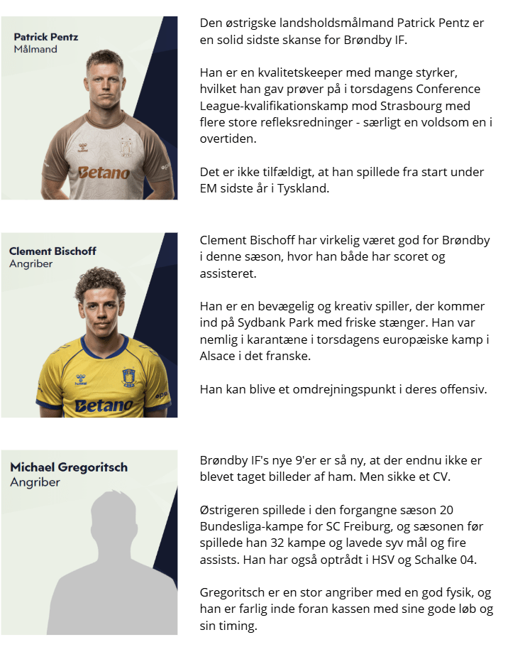 Brøndby IF jagter kvalifikation til Conference League mod franske Strasbourg, hvor man fik et godt udgangspunkt med sig torsdag fra Alsace-provinsen, hvor det blev 0-0. Der kan være lidt ømme stænger i Brøndbys trup, mens man formentlig vil prioritere den kommende midtuge-retur på Brøndby Stadion højt.