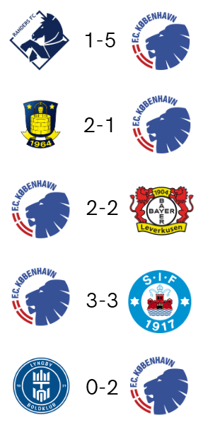 Vi er ubesejrede i to af vores seneste tre 3F Superliga-kampe mod FCK. Her har vi uafgjort ude og hjemme og et enkelt nederlag.