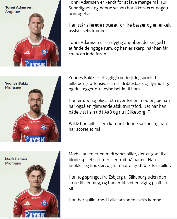 Silkeborg havde Peter Kjær på kassen og navne som Thomas Røll Larsen og Peter Lassen i marken.